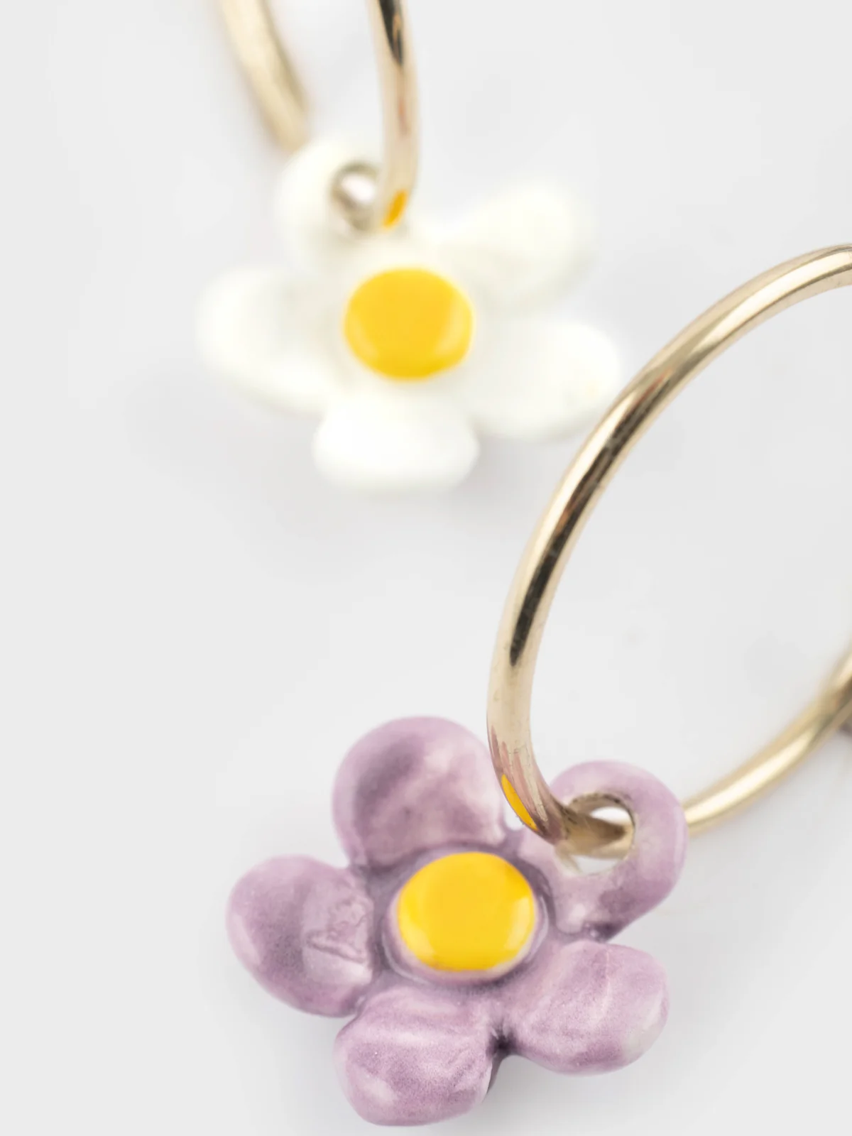 Les boucles d’oreilles sont en porcelaine et laiton doré à l’or fin, certifiées sans nickel pour éviter les allergies. Chaque pièce est unique avec une porcelaine faite et peinte à la main, offrant une variation subtile de couleur d’une pièce à l’autre. Mesurant  2.5 cm et un poids léger de 2,31 g, ces boucles d’oreilles allient élégance et artisanat. Conçues à Toulouse, en France, et fabriquées avec soins dans l’atelier familial en Thaïlande. Le métal doit être préservé de l’eau, des parfums ou des produits d’entretien afin qu’il conserve son éclat. La porcelaine gardera toujours sa brillance et sa beauté d’origine. Elle ne nécessite aucun entretien mais c’est une matière délicate et noble qui n’aime pas les chocs, prenez en soin.
