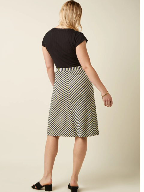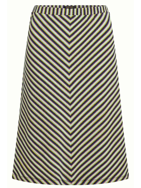 Cette jupe Beebop de King Louie apporte une touche graphique et rétro à votre dressing. Son motif à rayures en chevrons crée un effet visuel dynamique qui allonge la silhouette et attire subtilement le regard.