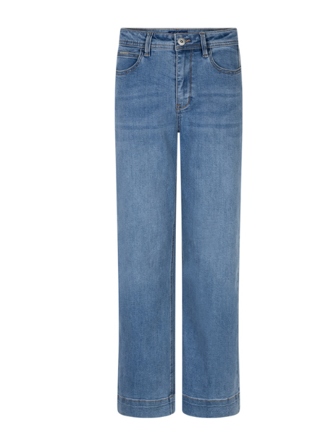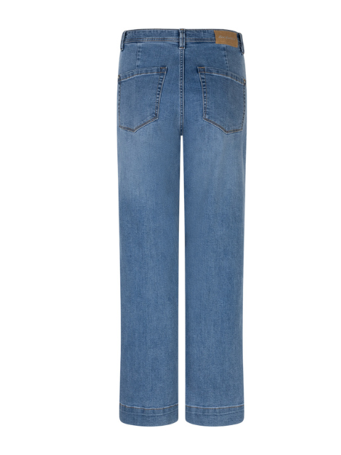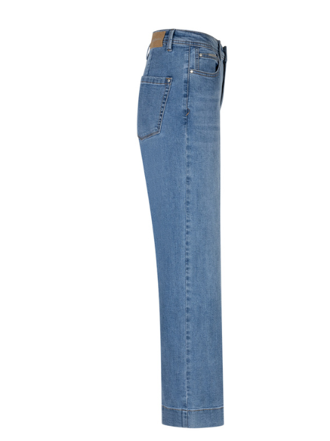 Confectionné dans un denim souple et résistant, il associe coton, polyester recyclé, viscose et élasthanne, garantissant un excellent compromis entre maintien, douceur et liberté de mouvement. Son délavage bleu moyen lui donne un style moderne et polyvalent, facile à porter en toute saison.