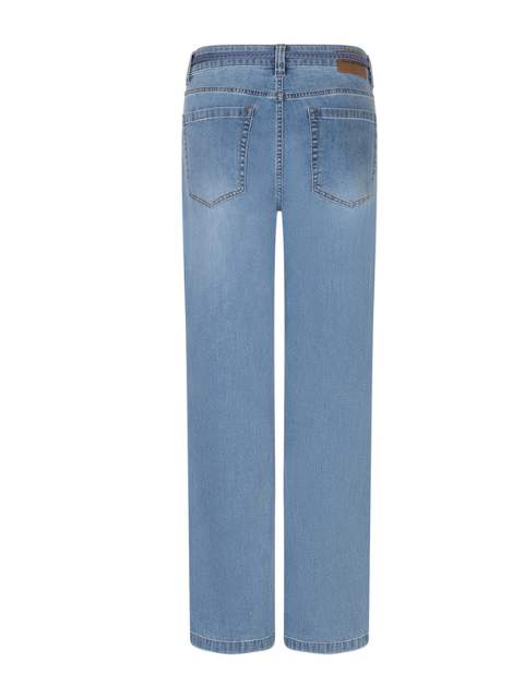 Ajusté à la hanche et évasé à partir de la cuisse, ce jean met en valeur la silhouette tout en offrant une grande liberté de mouvement. Sa taille haute confortable assure un maintien parfait, tandis que son lavis bleu clair illumine vos looks de saison.