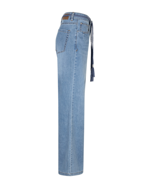 Ce jean bleu clair a une coupe larges jambes associé à un cordon tressé qui apporte une touche bohème chic . Adoptez une allure estivale et décontractée !