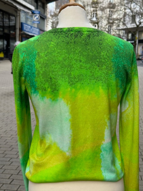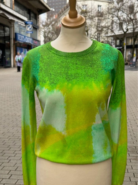 Pull manches longues Aldo Martins au camaïeu vert et jaune original. Sa matière douce et agréable, enrichie en soie (30%), apporte une belle fluidité et un tombé élégant, parfait pour un look chic et moderne au quotidien.