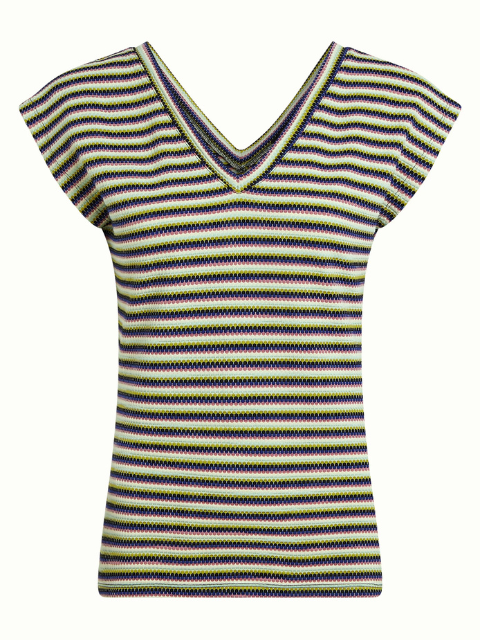 Top King Louie Beebop au style rétro chic, parfait pour apporter une touche de fraîcheur à votre dressing. Son imprimé rayé multicolore dynamise la silhouette tandis que sa maille texturée offre un rendu original et élégant.