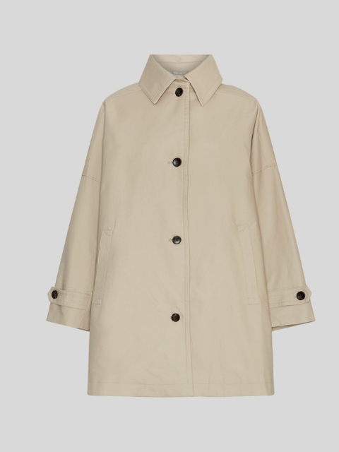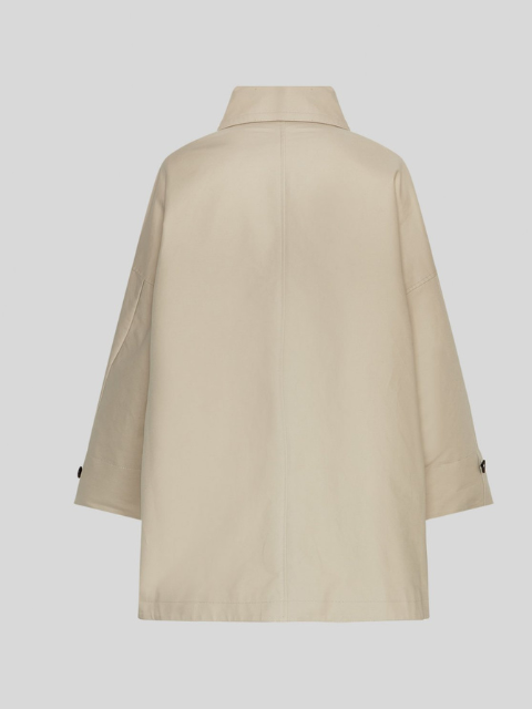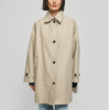 Trench mi-long avec fentes latérales, coupe oversize. Col classique, fermeture par boutons. Poignets à ajuster avec les pattes de boutonnage. Poches latérales. Réalisé en 100% coton en aime sa teinte limeuse beige clair. Doublure en viscose et polyester. Boutons bruns. Taille unique.